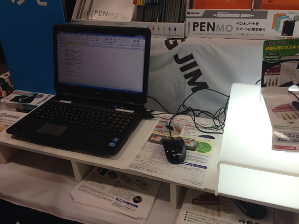 いきなり中へ!キングジムでマウス型スキャナーの説明をキングジムの人がイケてるサラリーマンの人に一生懸命説明していました。私は一生懸命その説明を聞いて、サラリーマンはあまり興味がなさそうでしたが、私にはあまり熱心に説明してくれませんでした。XP非対応だったので絶対に買わないと思いました。OCRがないそうなのでOCRが付いたら買うかもしれません。