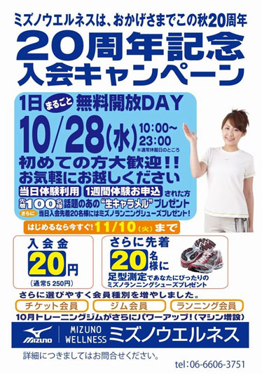 ミズノウエルネスというジムがオープン20周年記念で無料開放しているということで、初めてジムへ行ってきました。