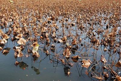 枯れ切った蓮たち。是非夕方に見たい景色。