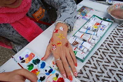 帰る前に、新たに企画された女性向けイベント「ペイントアート・ボディ&ネイル」をやって頂く(子供が)。