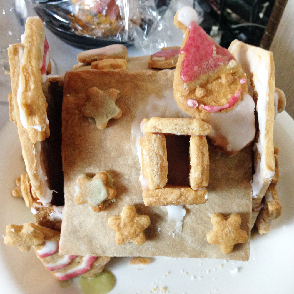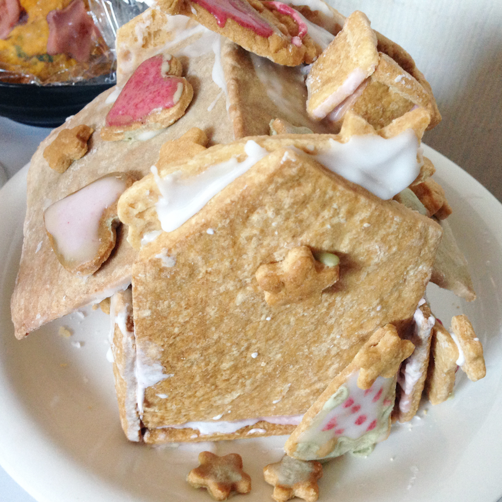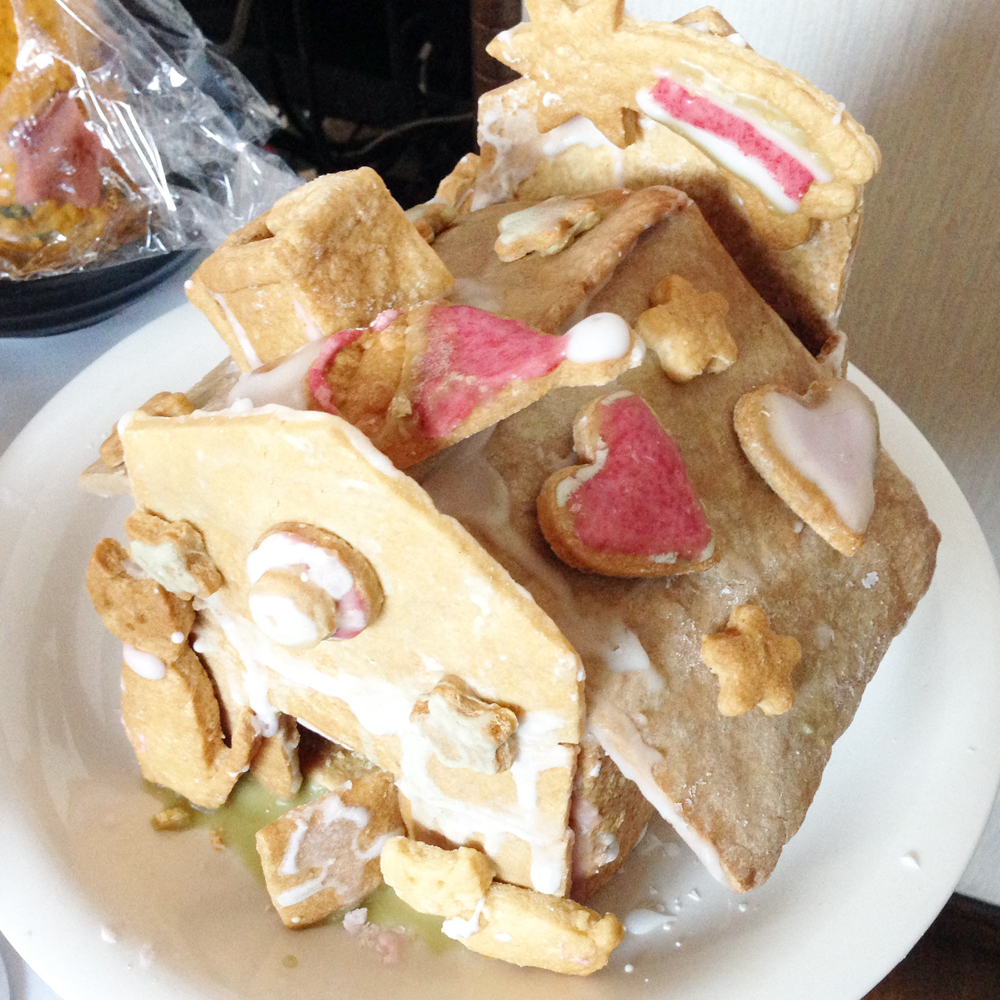 裏側。クッキーはお砂糖控えめメタボ対策済みですが周りの粉砂糖が浸透して激アマに。おいしいけど怖いお家となりました。でも遠慮せずボリボリ食べました。